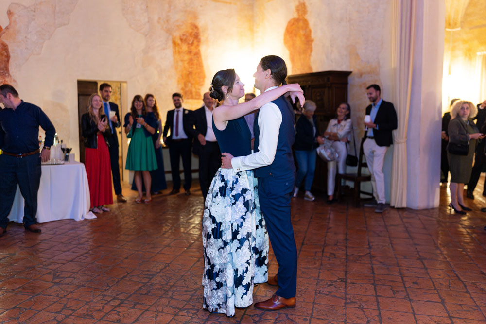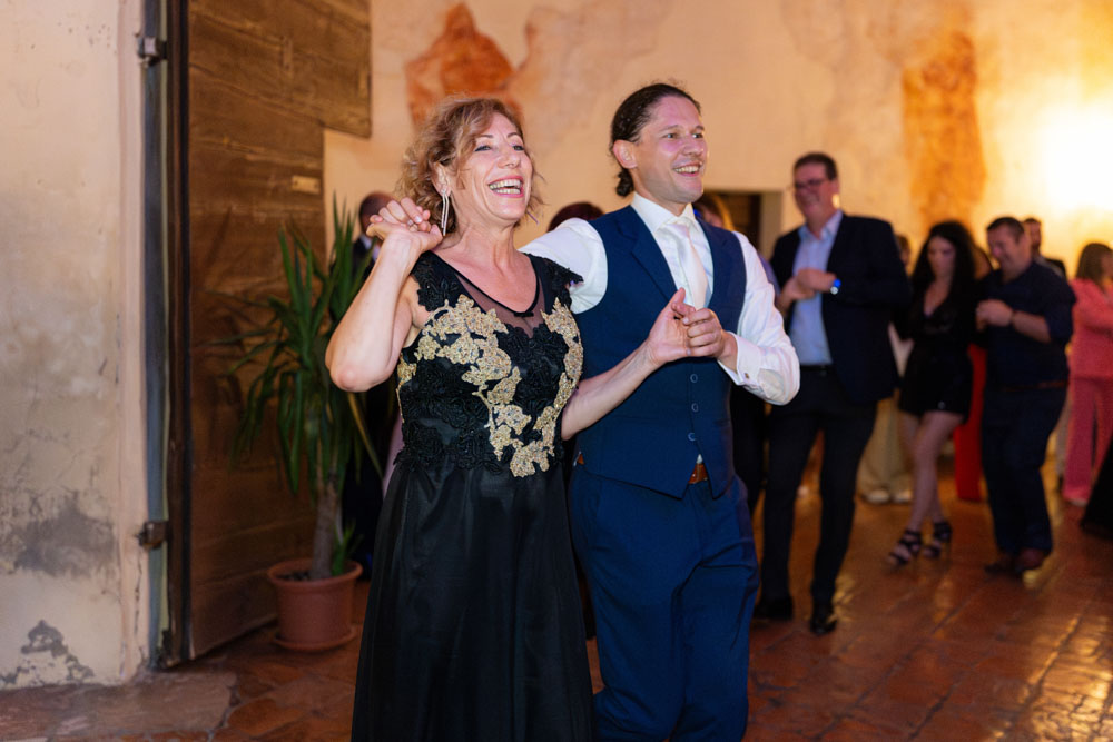 Dopo la cerimonia, la festa è stata un vero concentrato di allegria, con brindisi, balli e discorsi carichi di affetto. Ogni dettaglio parlava di loro, del loro modo di essere e del legame profondo che li unisce.